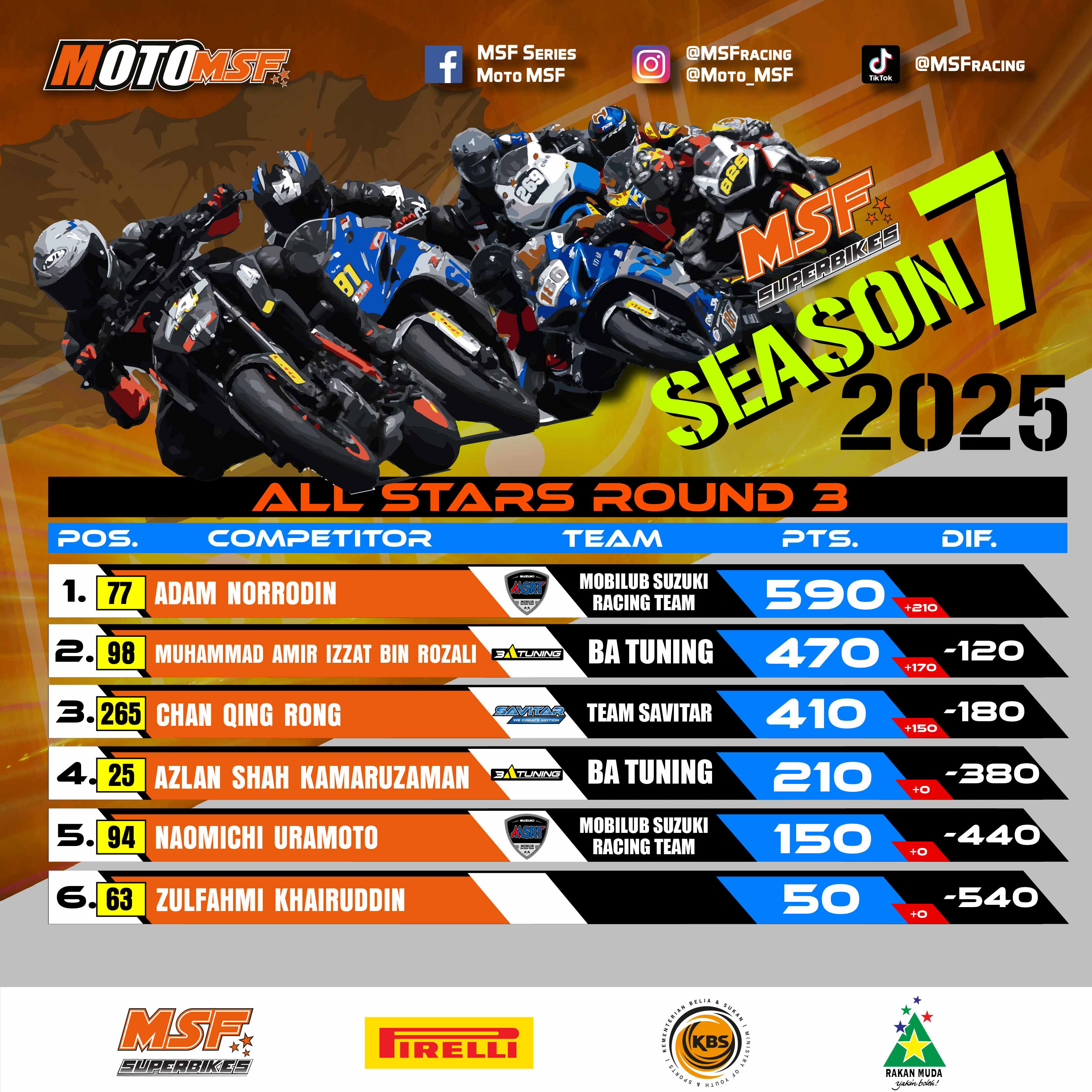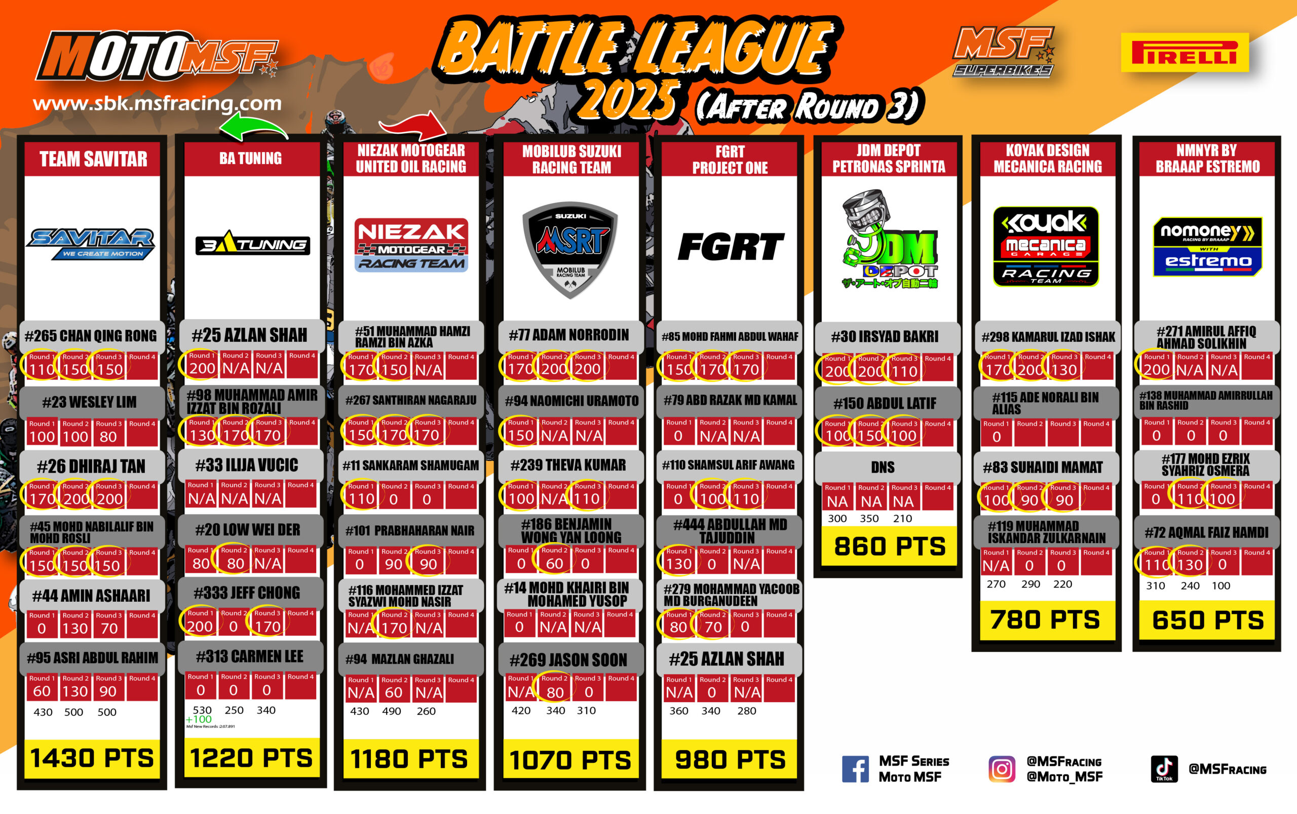 Read moreMSF SBK 2025 : Battle League Points Standing after Round 3