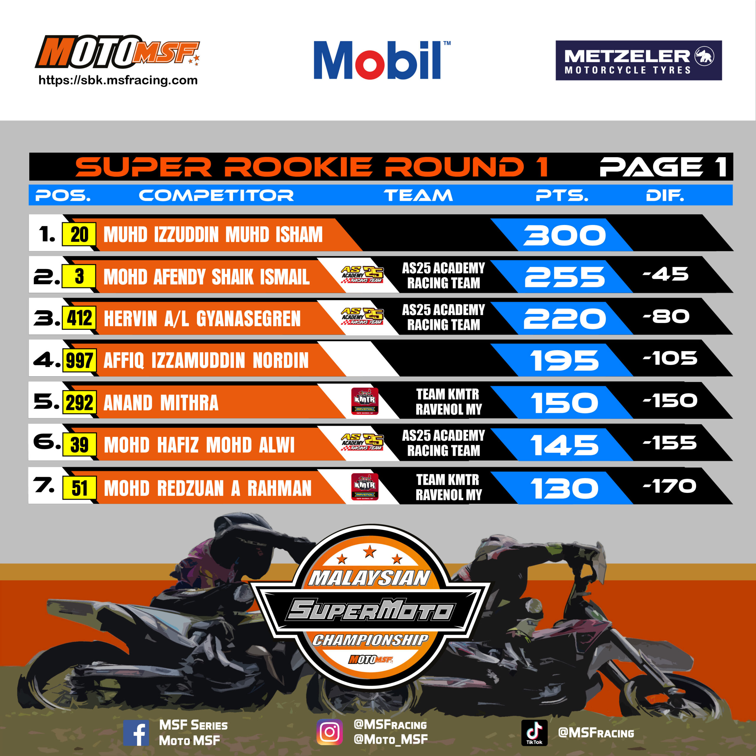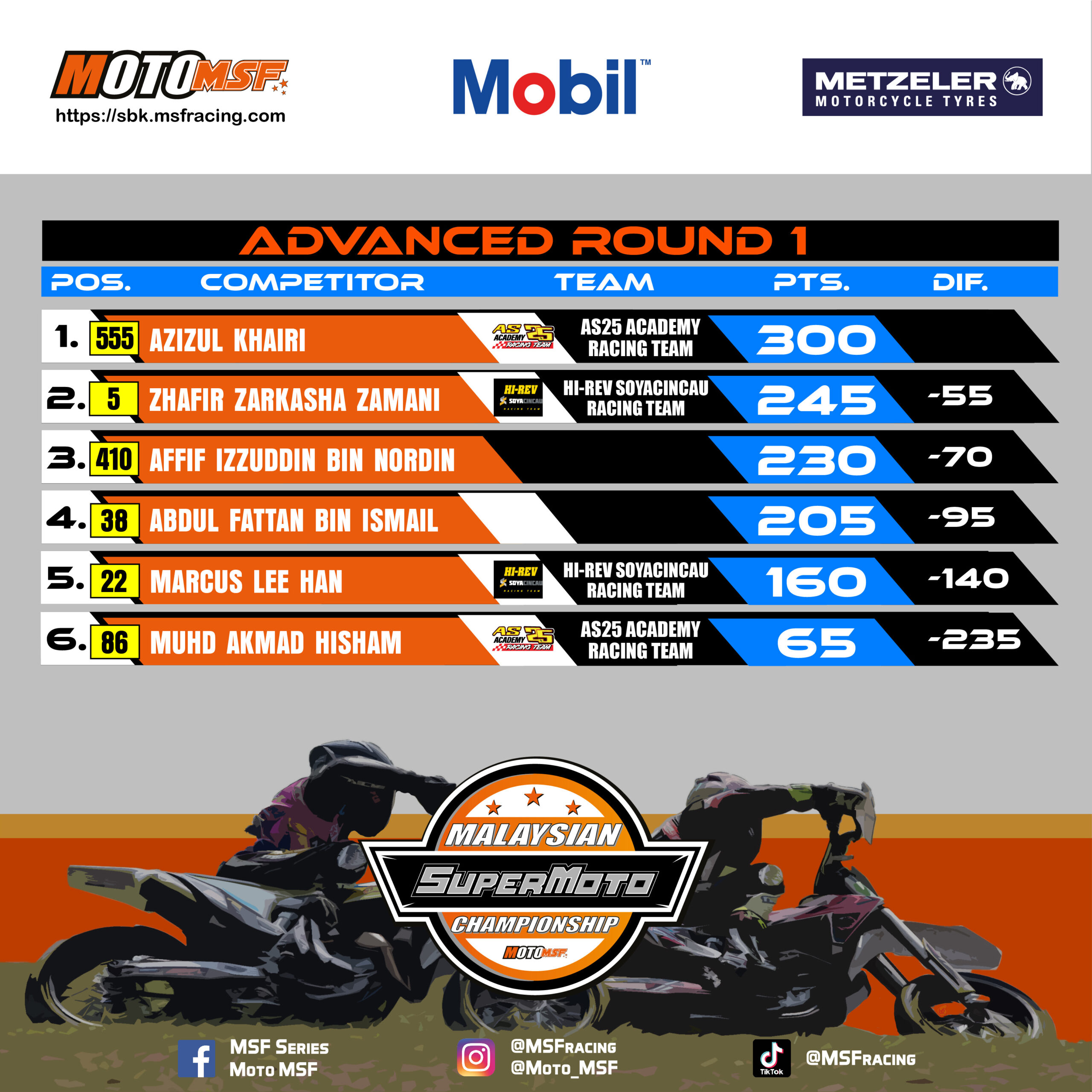 In the Advanced category, our reigning champion Azizul Khairi remains in the lead of the championship for this new season, along with Muhamat Hairy who has just upgraded to the Evo category and finished in first place, leading the category. In the Super Rookie, there is always a surprise from the new racers, and this time it was seeing Muhd Izzuddin scoring the highest points in the category.