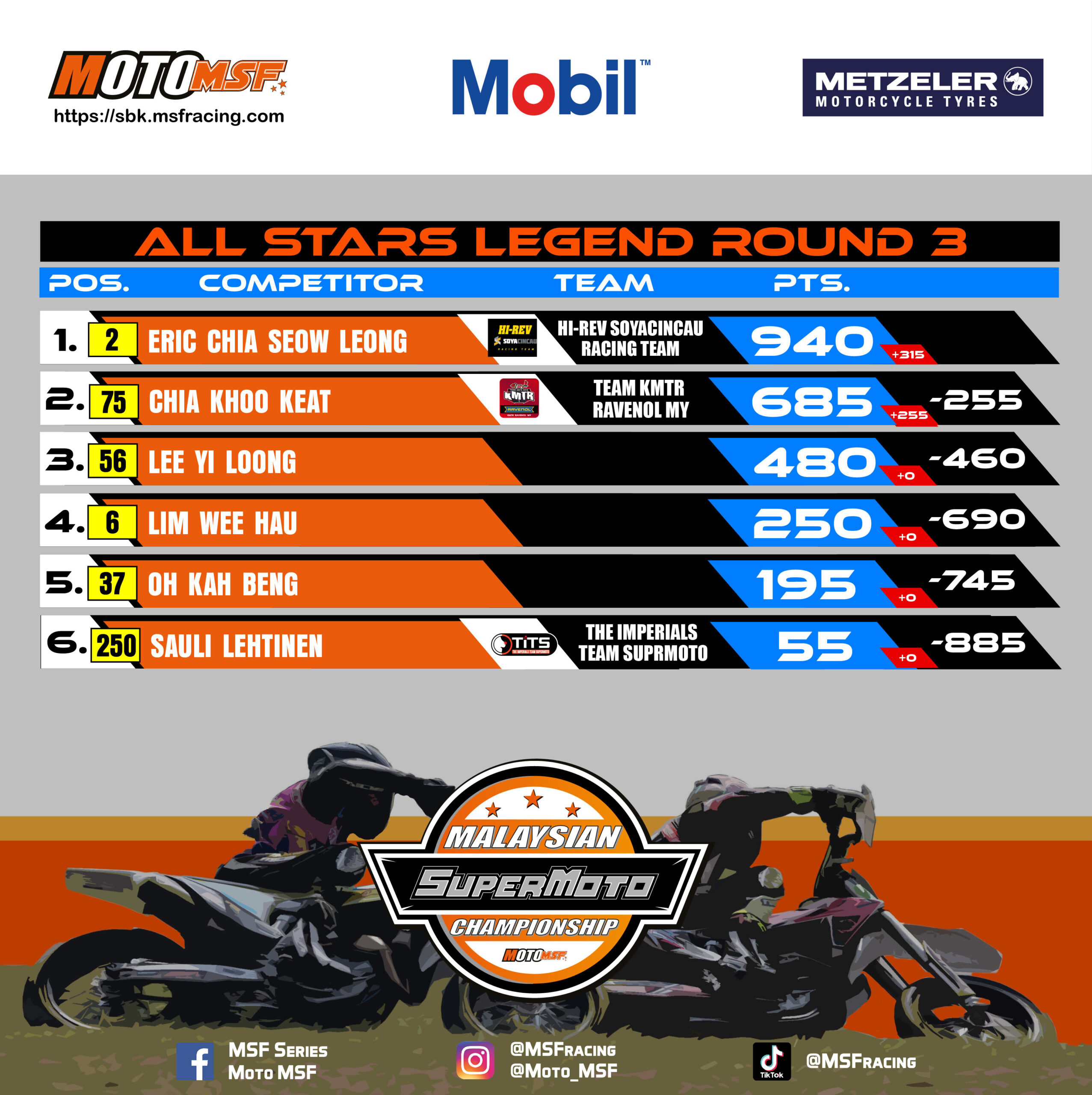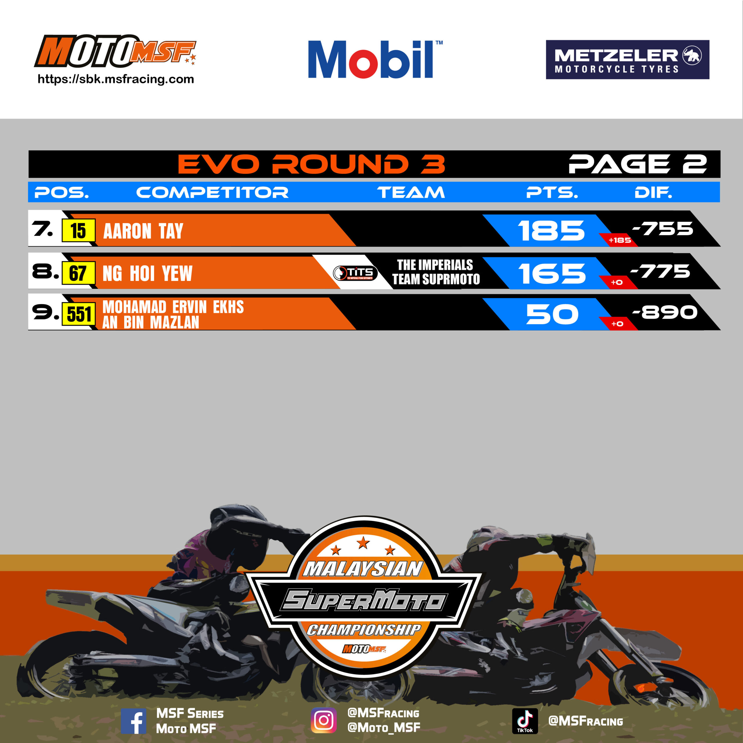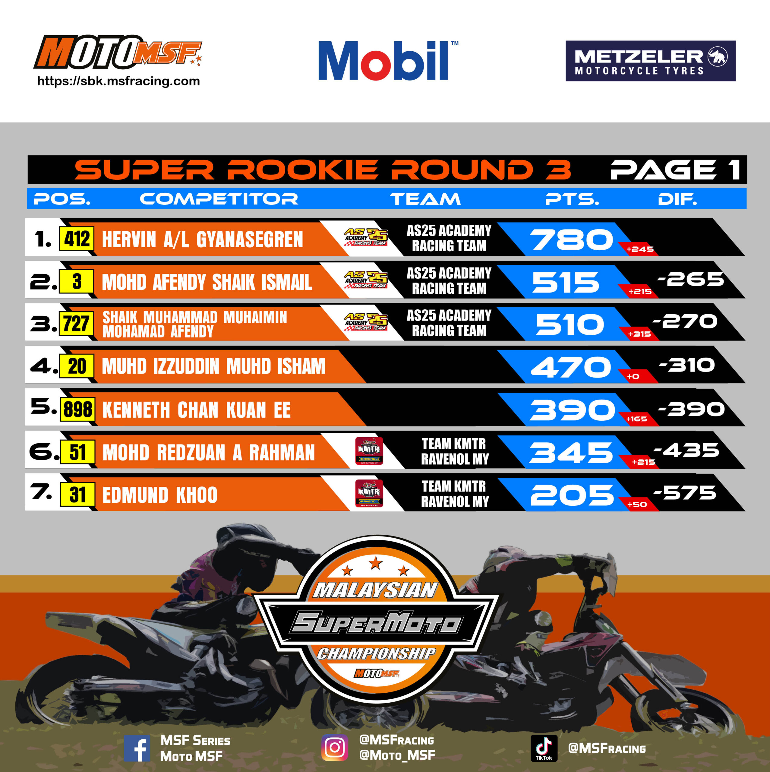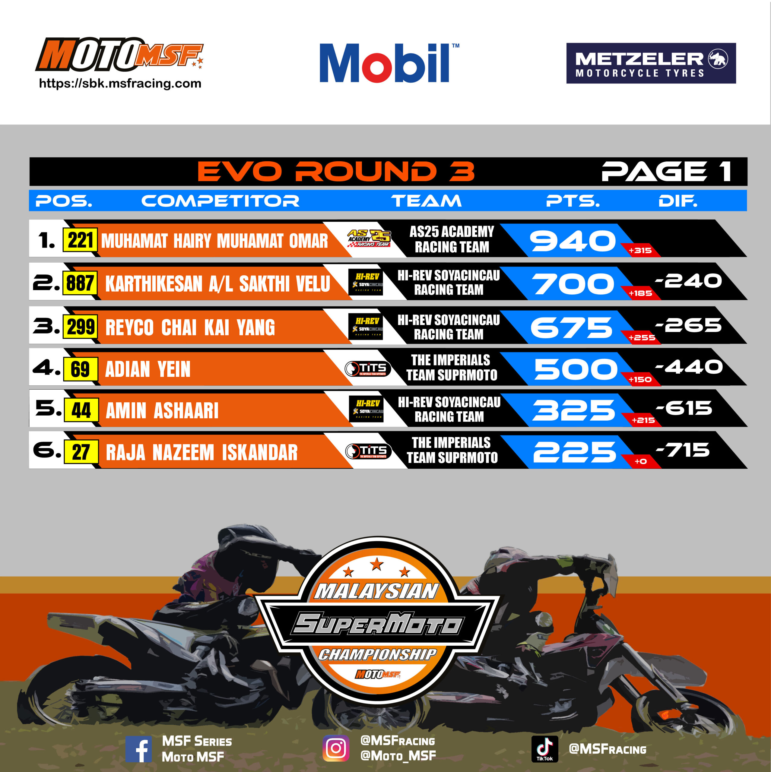 Malaysian Supermoto Championshiop Points Standing after Round 3, Langkawi