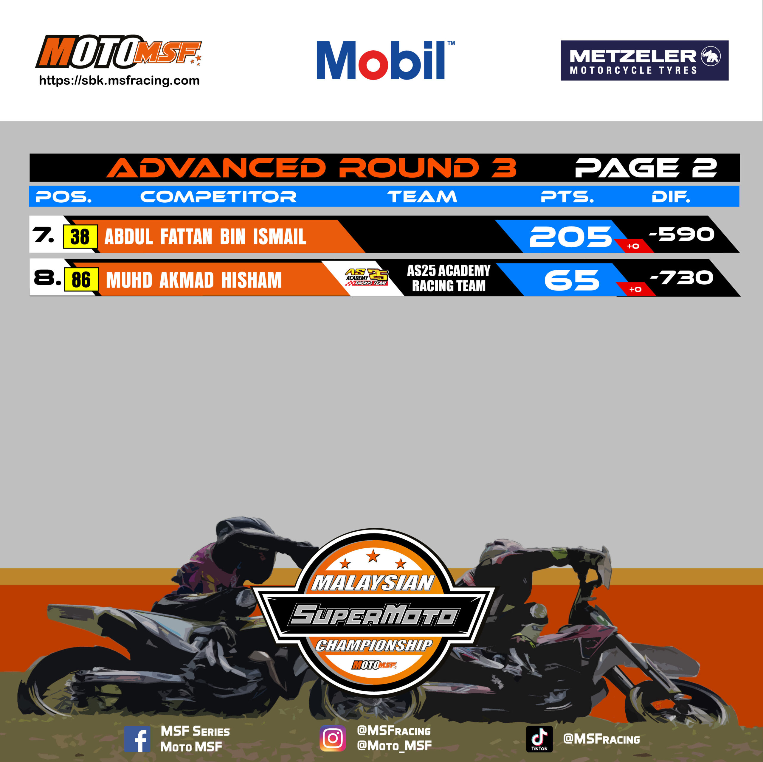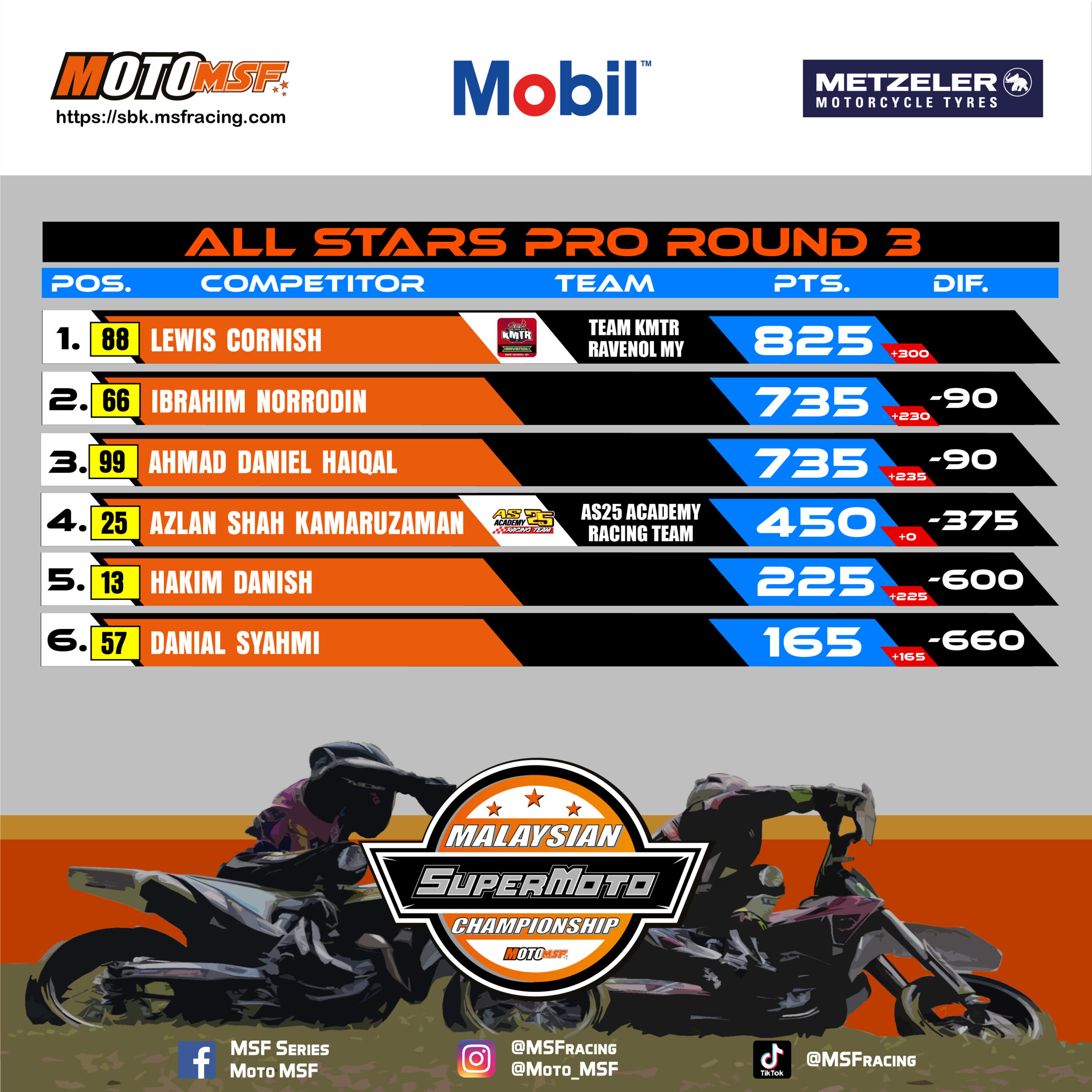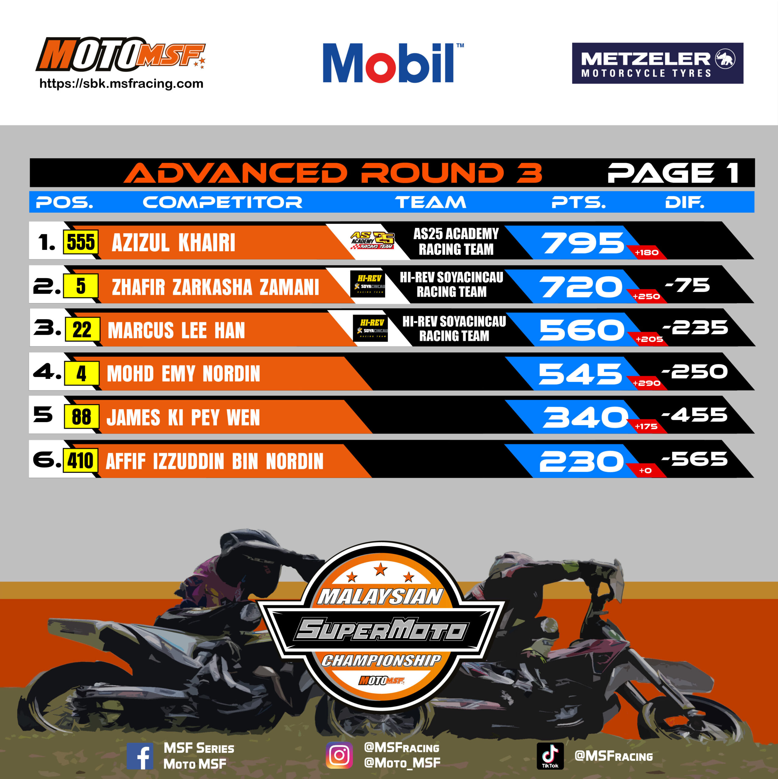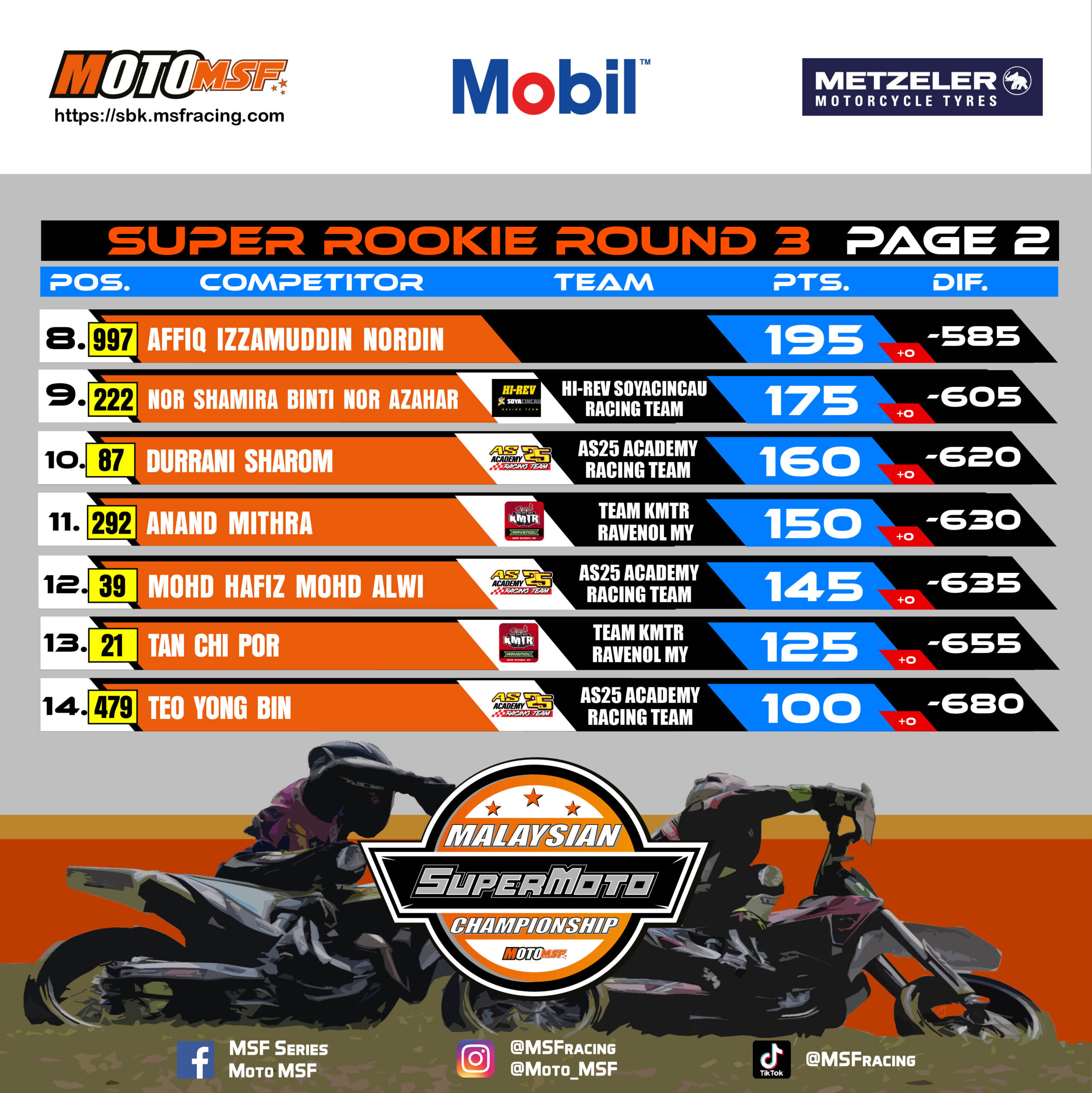 Malaysian Supermoto Championshiop Points Standing after Round 3, Langkawi