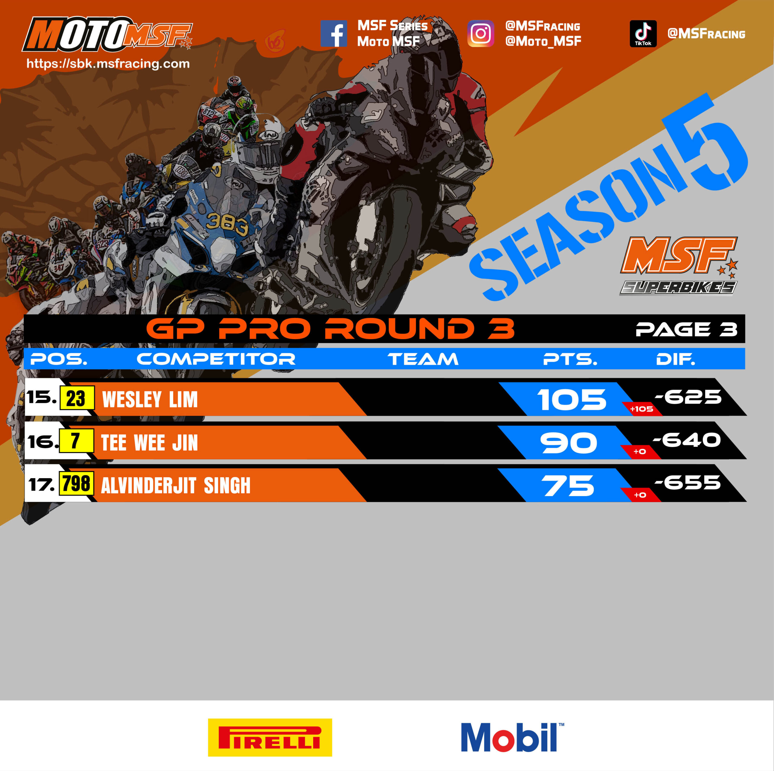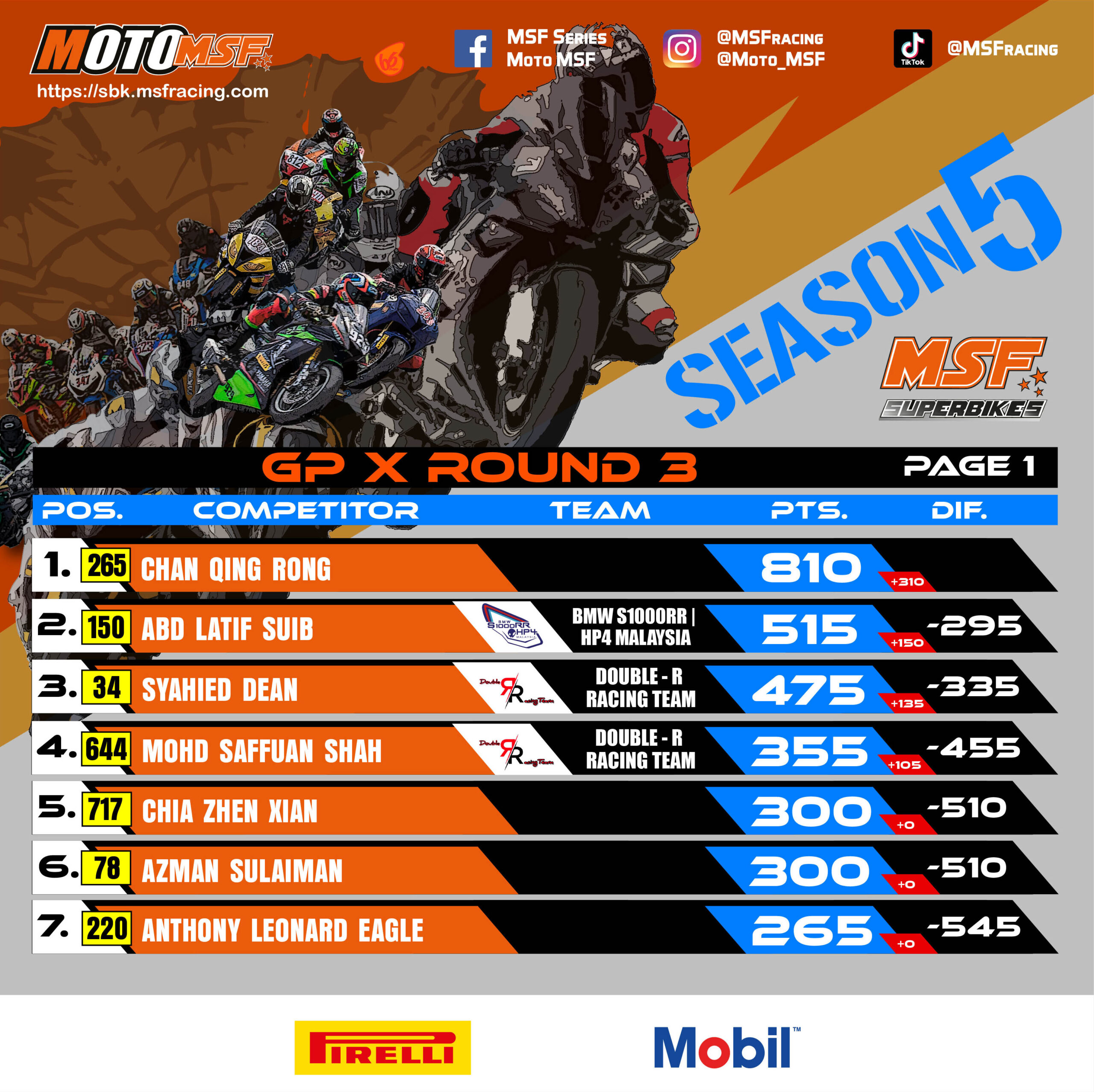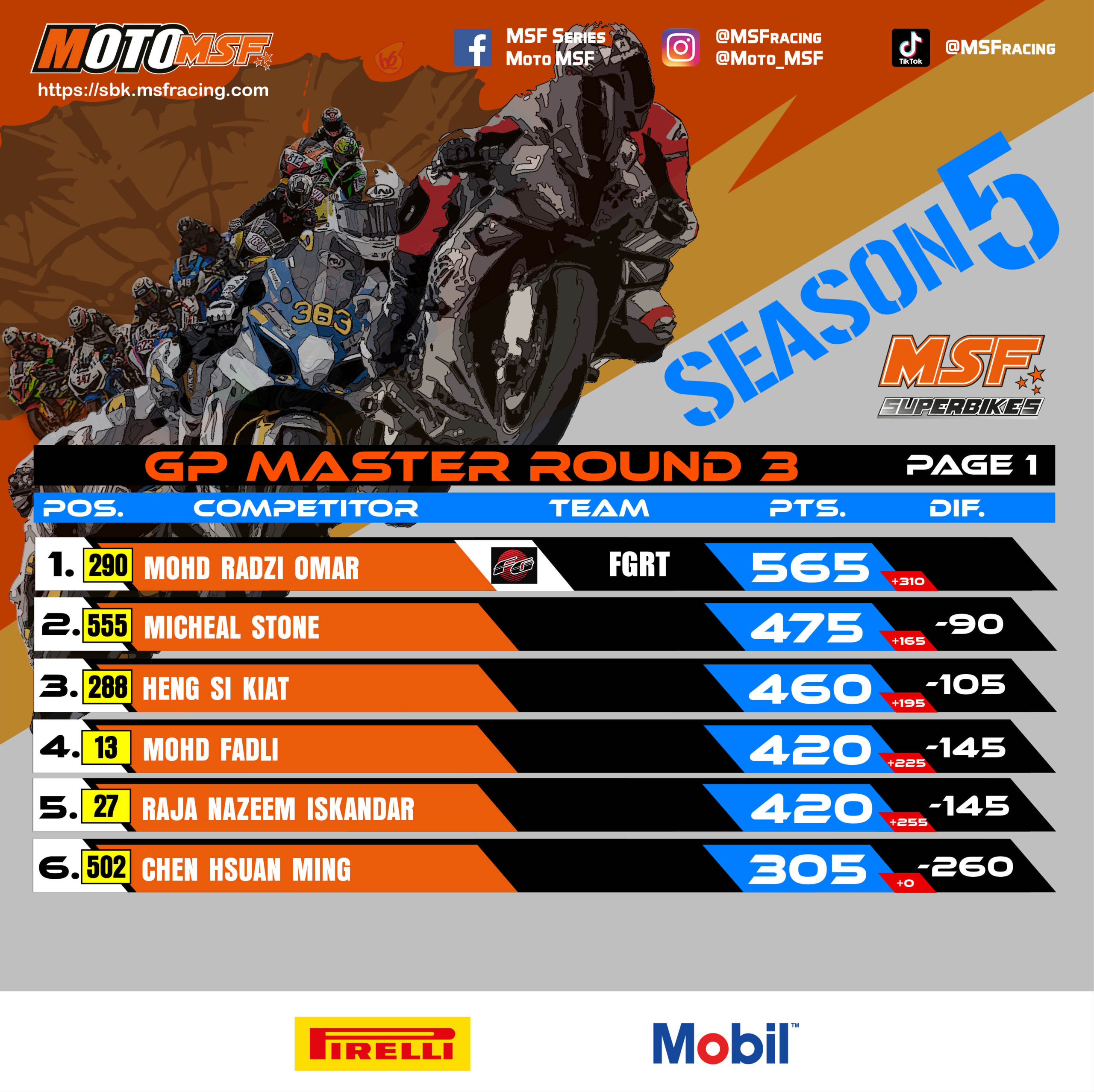 MSF Superbikes Championship Points Standing after Round 3