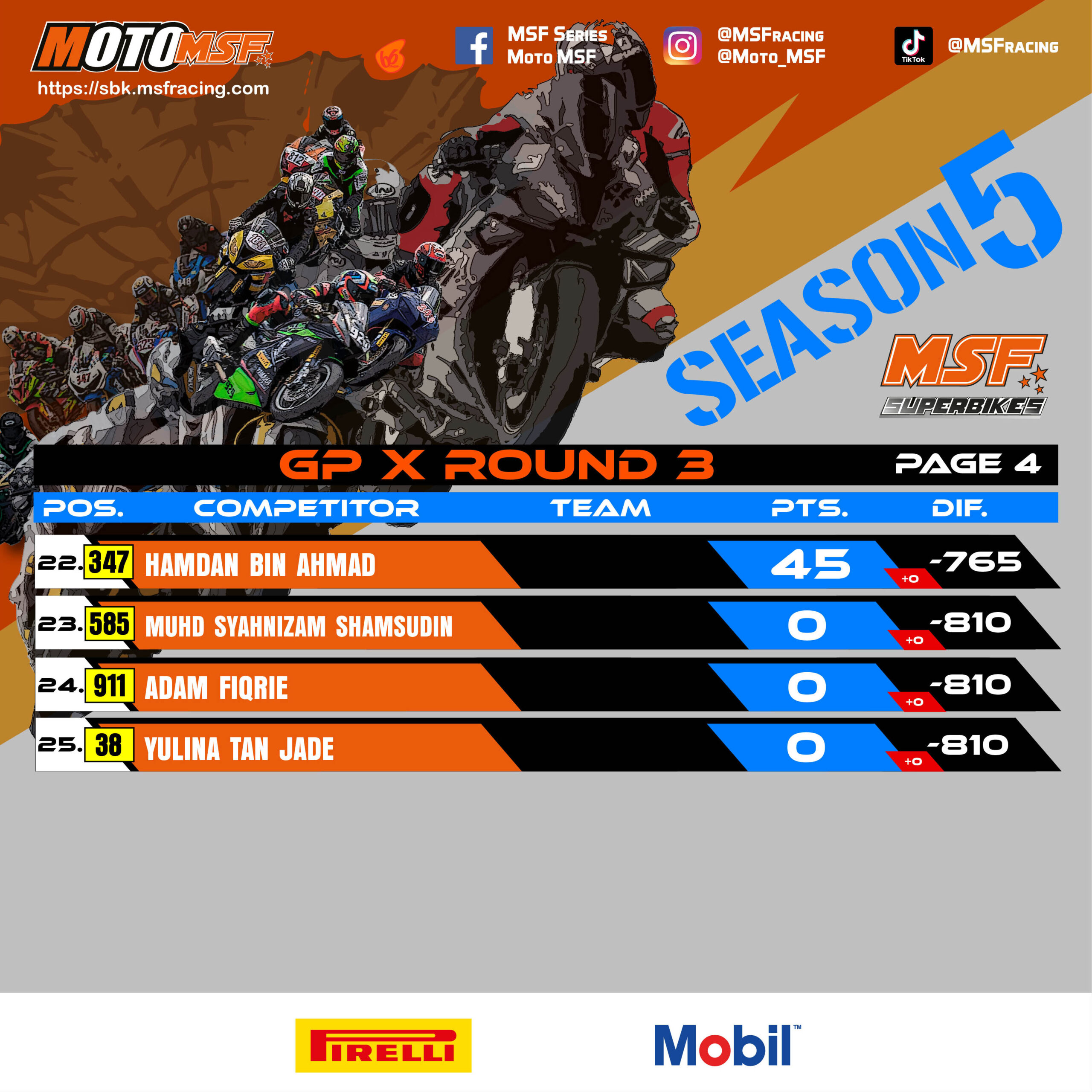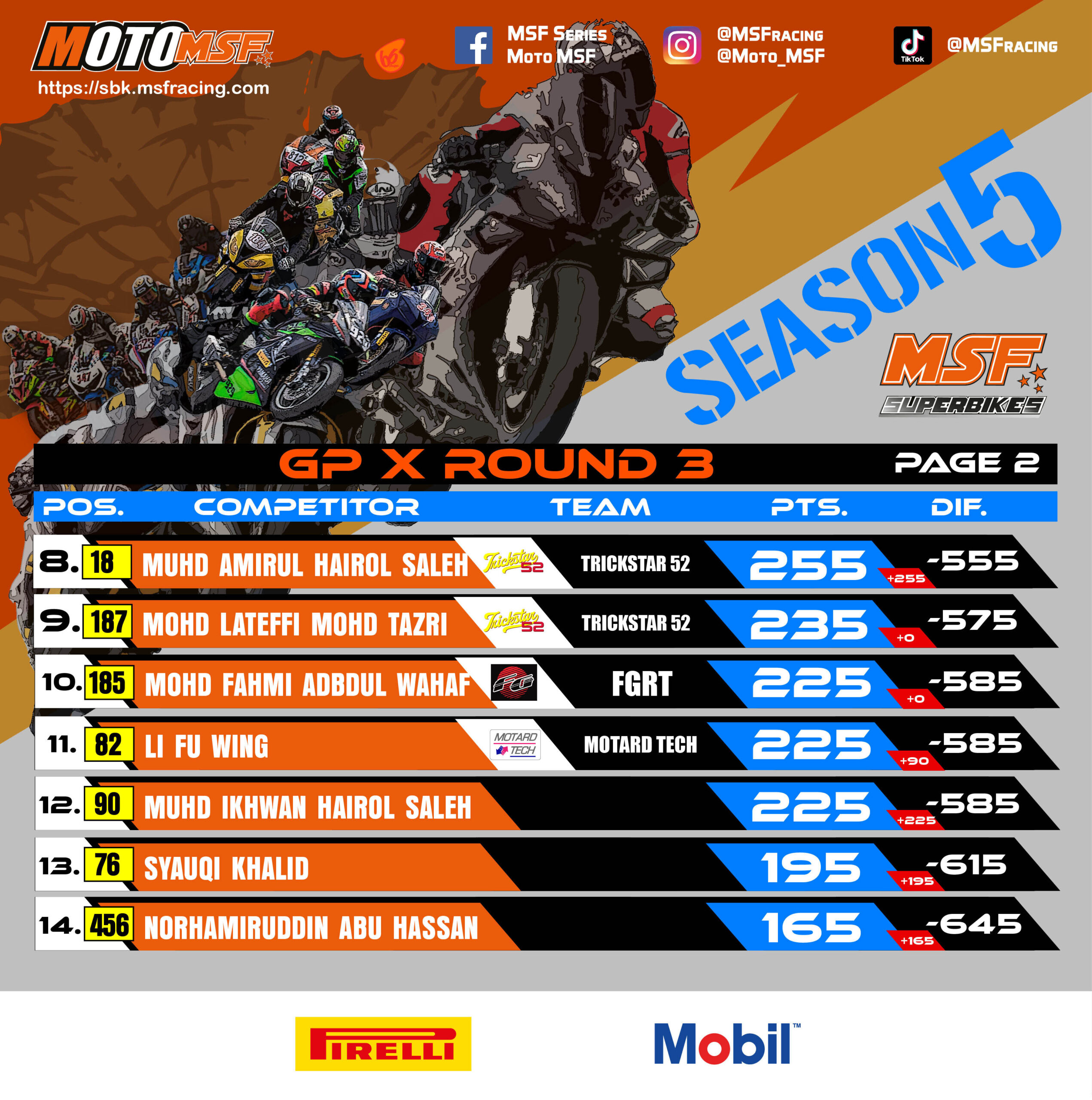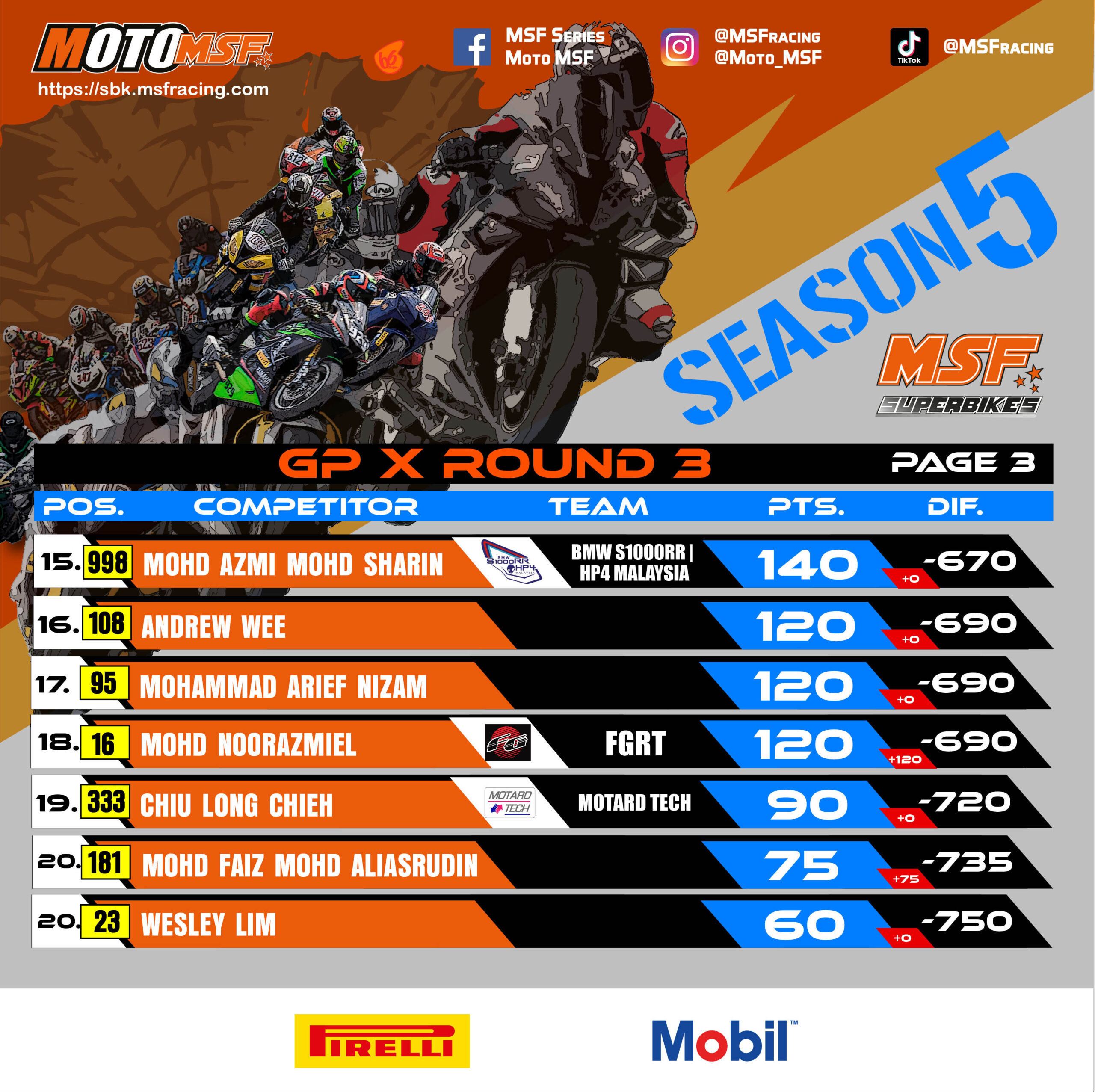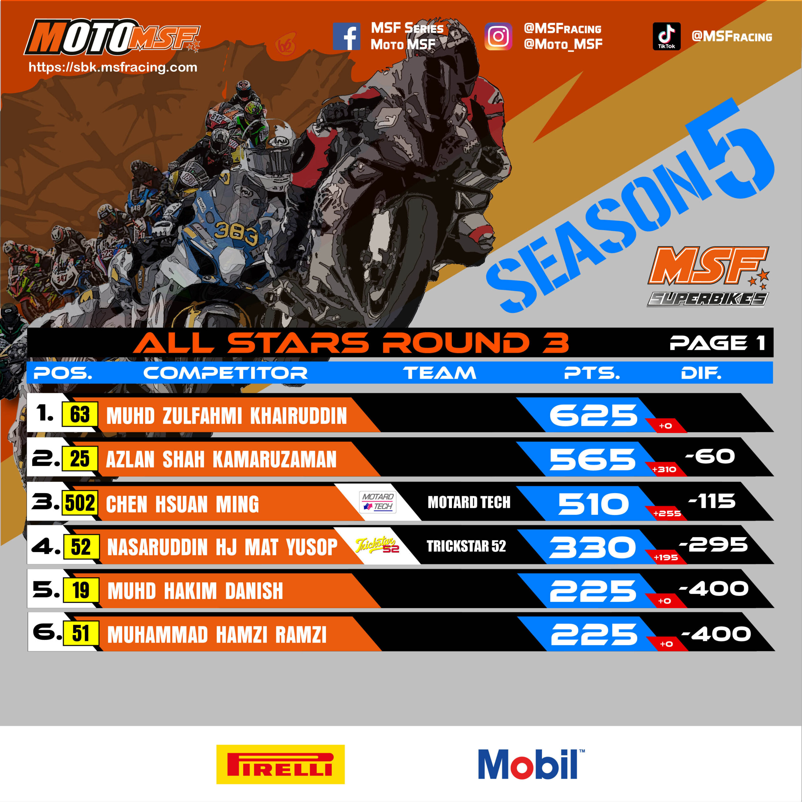 MSF Superbikes Championship Points Standing after Round 3