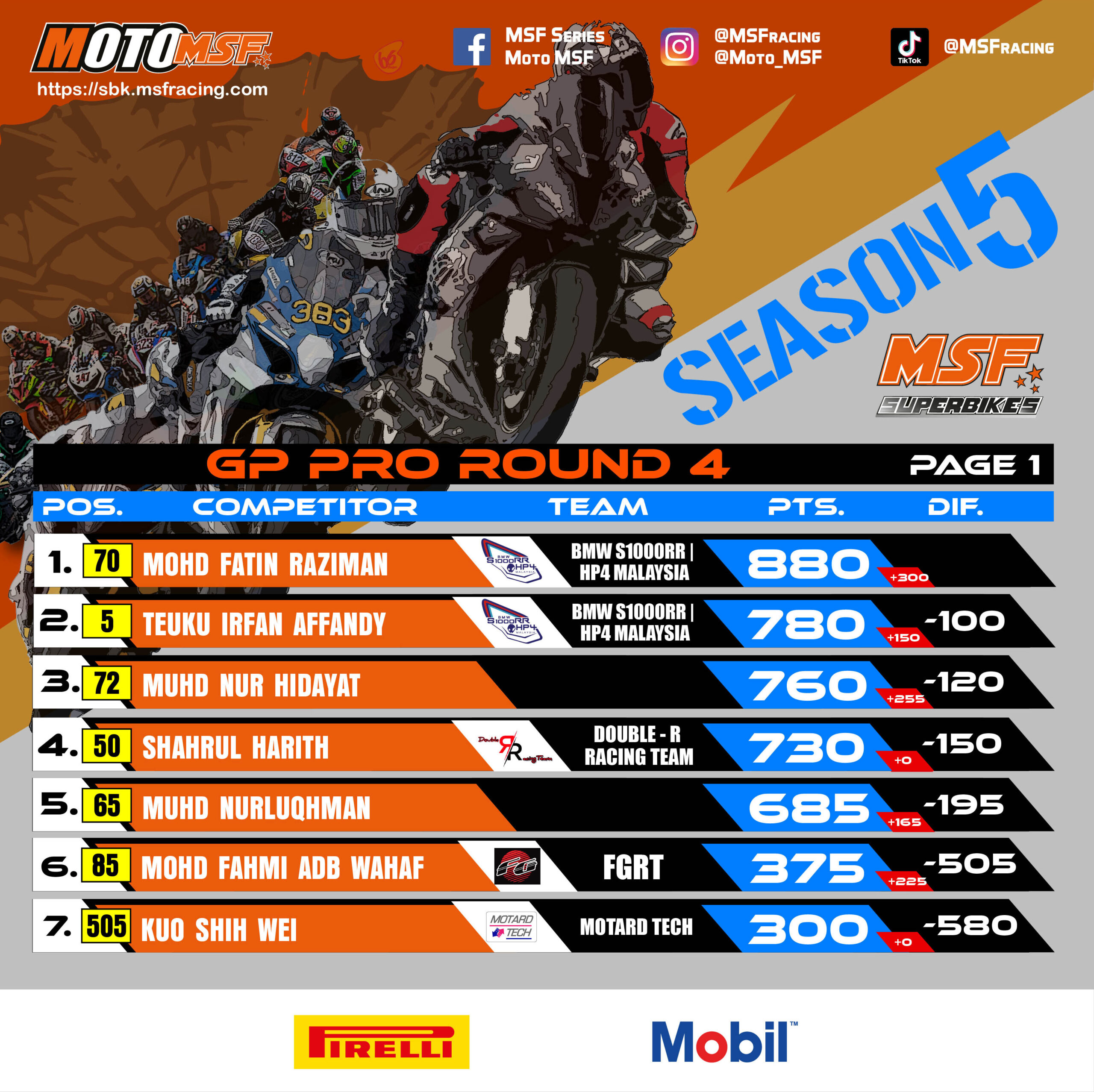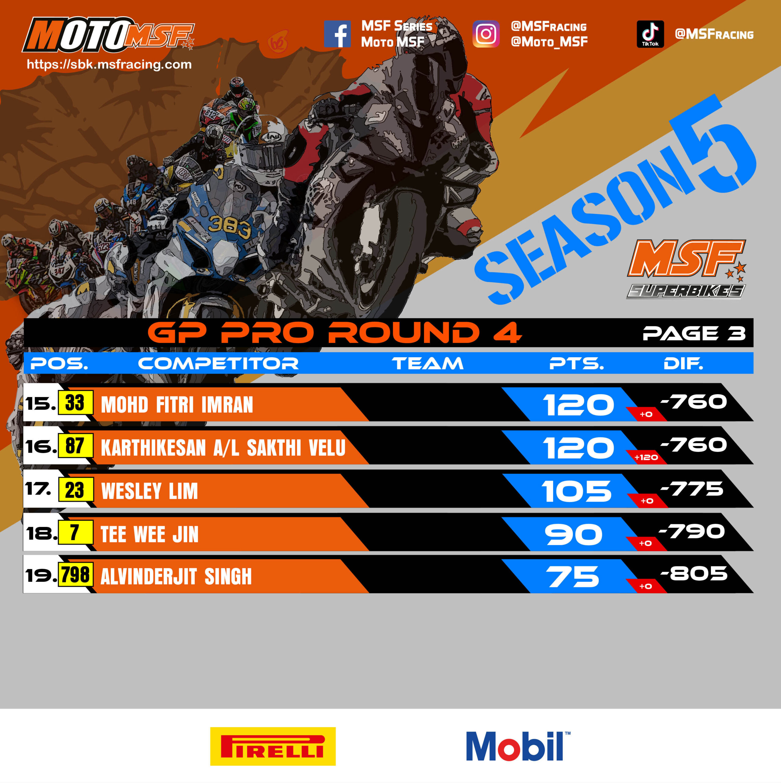 The GP Pro category witnessed a stellar display of talent, with #70 Mohd Fatin Raziman from BMW S1000RR HP4 Malaysia claiming the top spot with a display of unparalleled skill and strategic racing prowess.