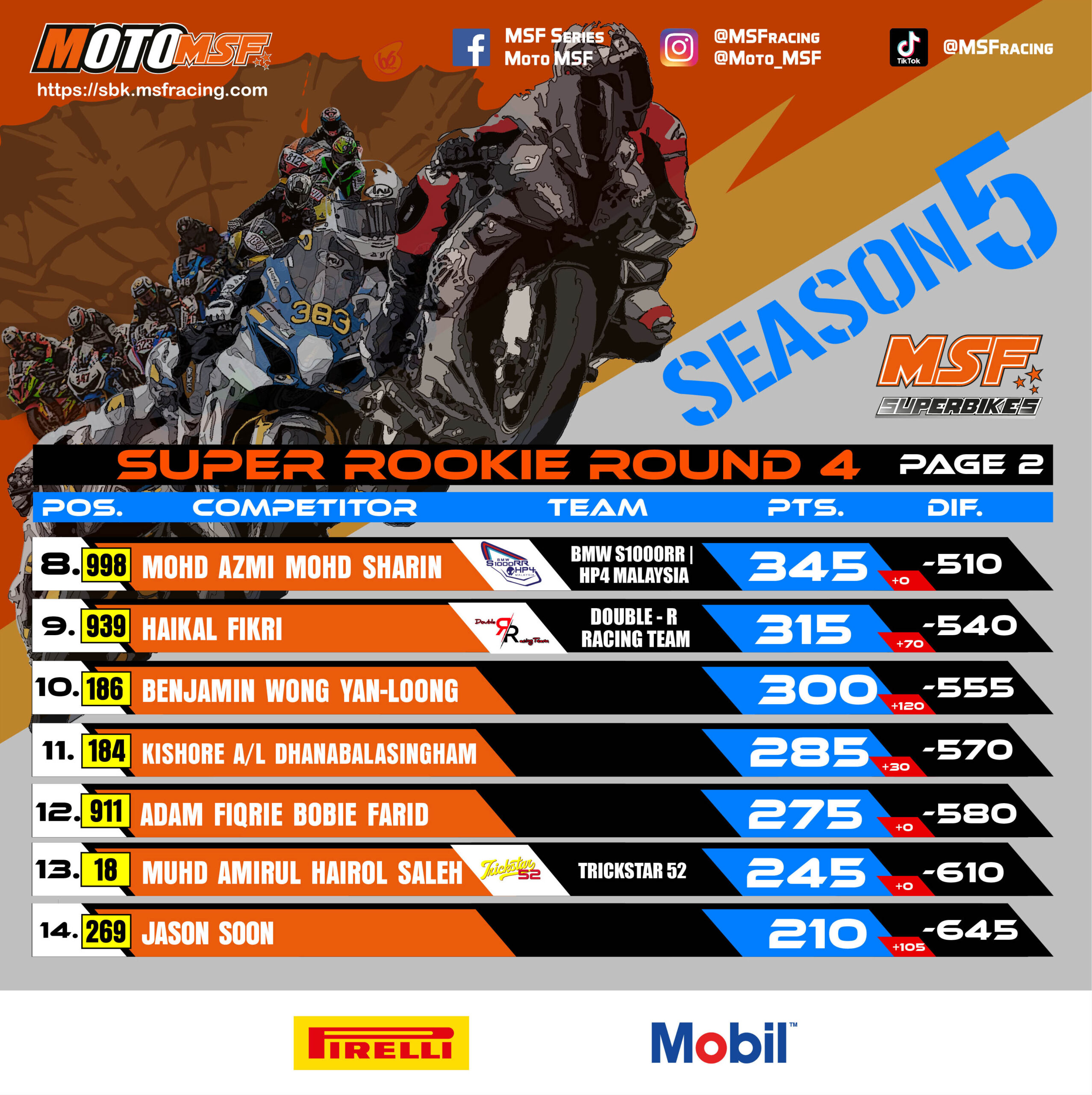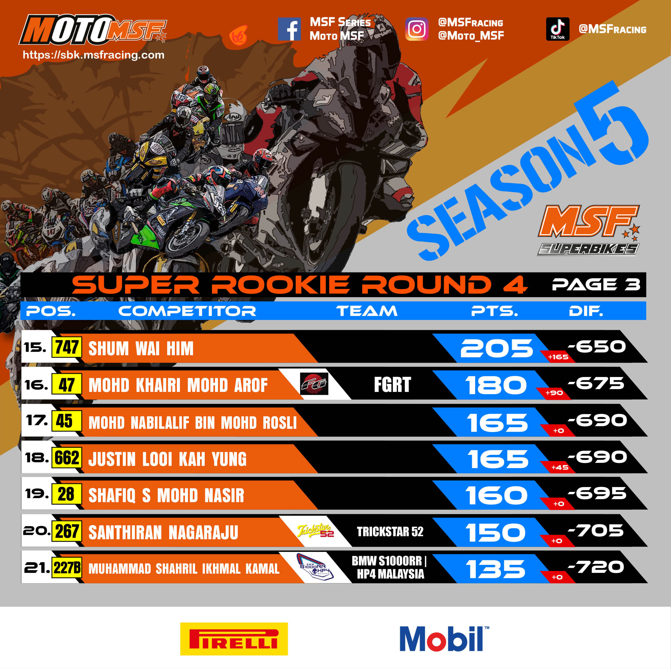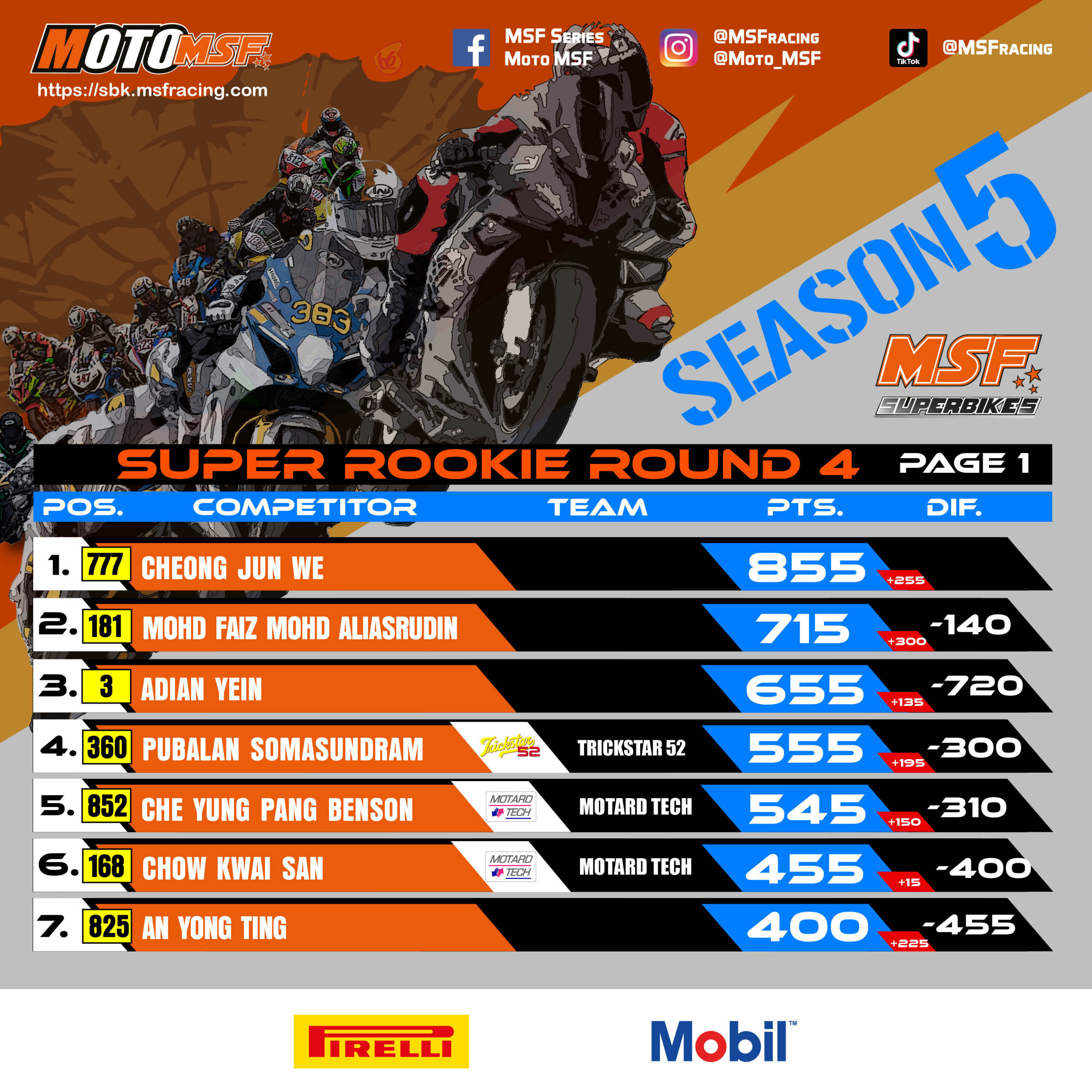 In the Super Rookie category, #777 Cheong Jun We marked an impressive debut season, showcasing exceptional promise and determination as he clinched the top spot, leaving an indelible mark in the history of the MSF Superbikes series.