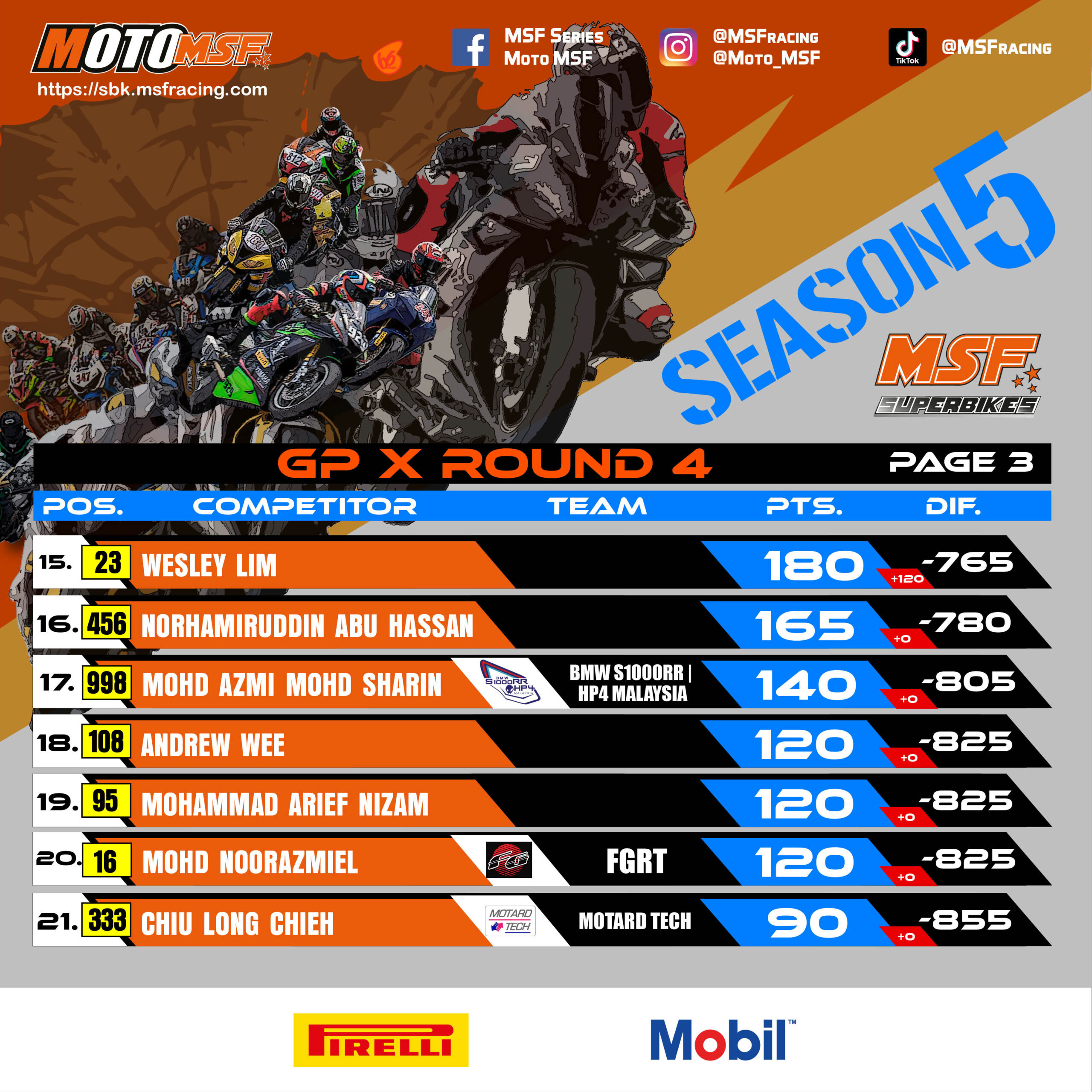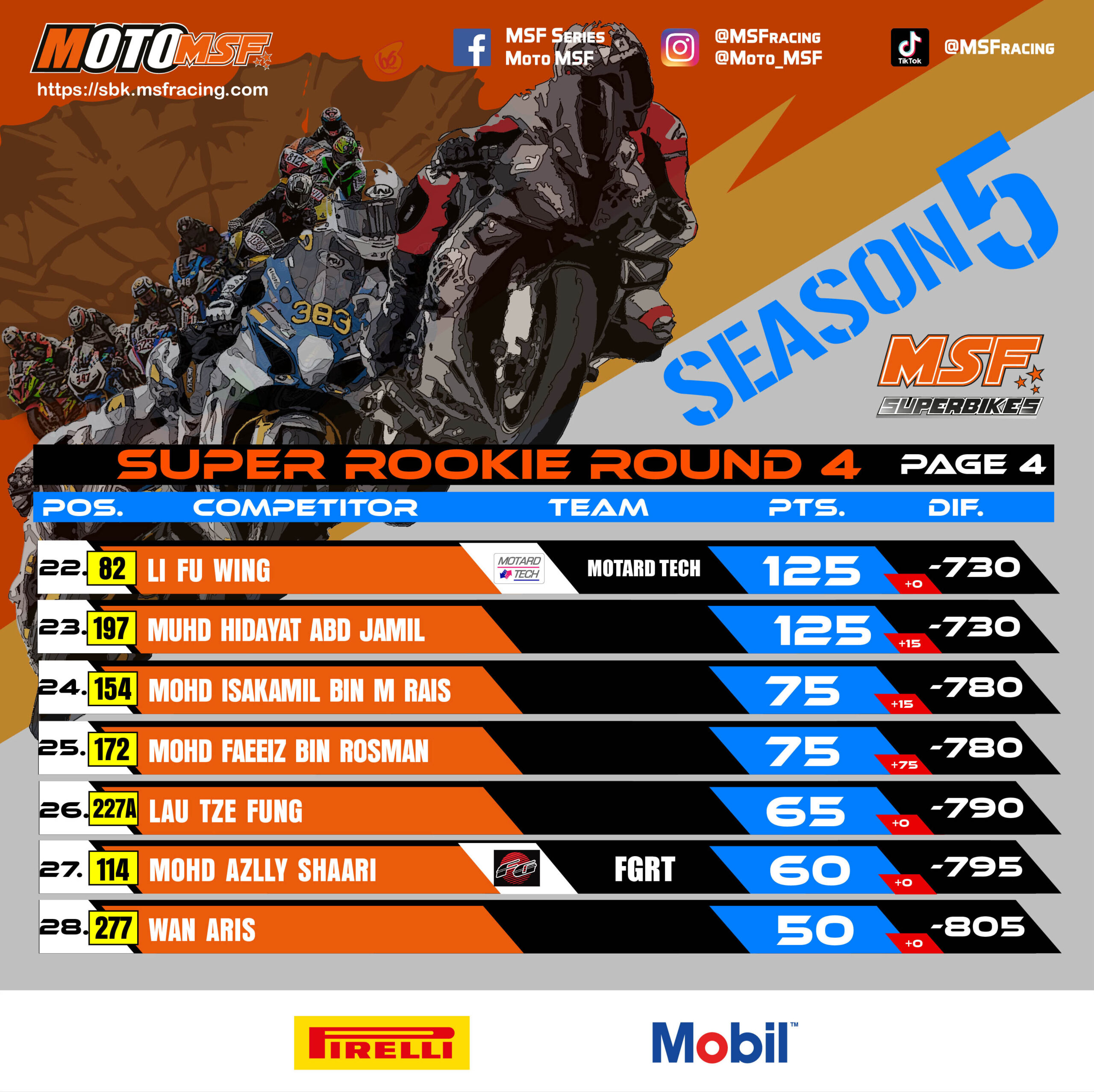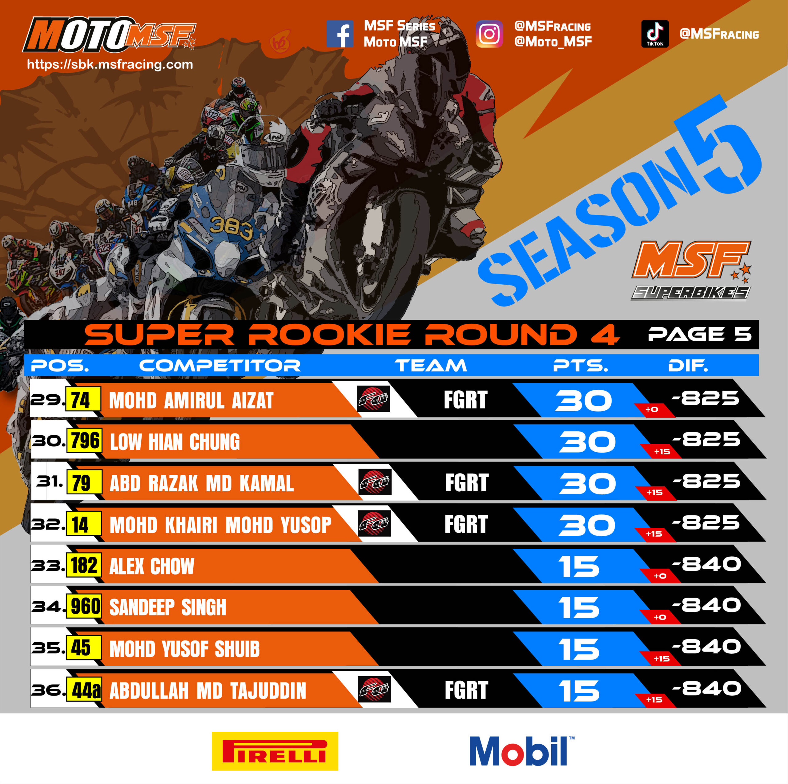 In the Super Rookie category, #777 Cheong Jun We marked an impressive debut season, showcasing exceptional promise and determination as he clinched the top spot, leaving an indelible mark in the history of the MSF Superbikes series.
