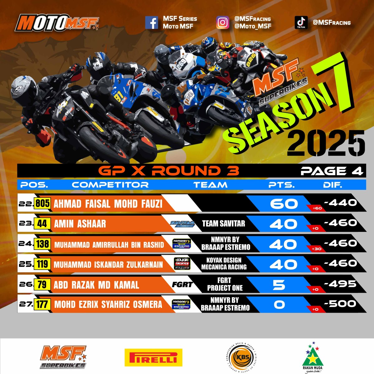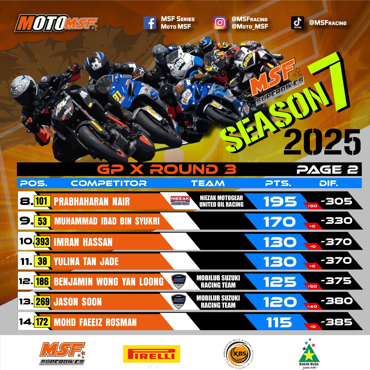 MSF SUPERBIKES 2025 – ROUND 3 RIDER STANDINGS SHAKE-UP!