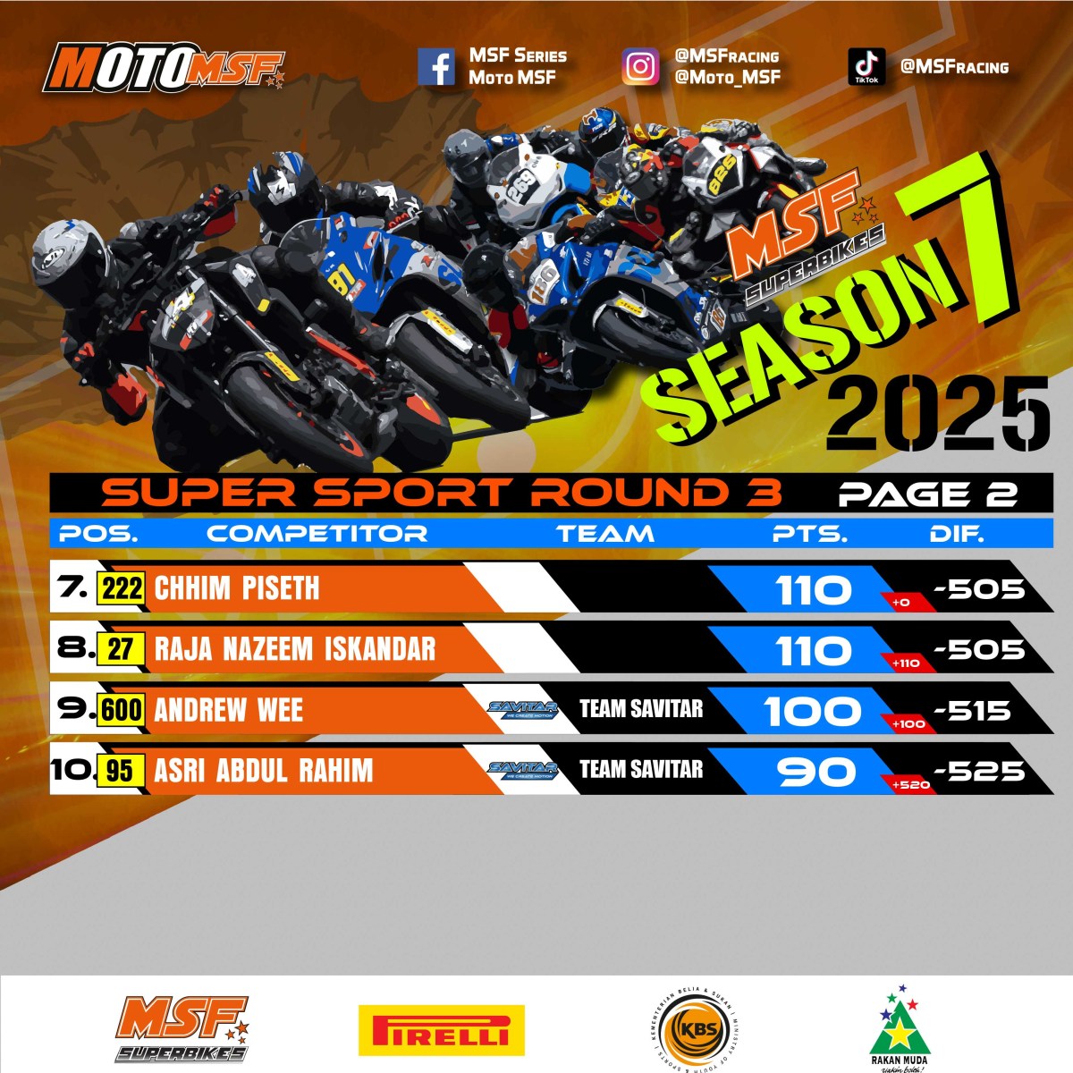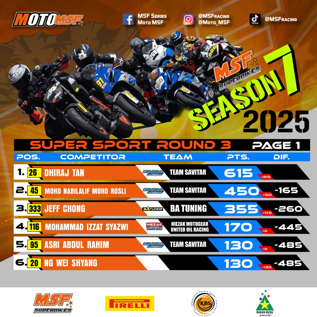The heat was on at Sepang International Circuit for Round 3 of the MSF Superbikes 2025 season, and the championship picture is looking sharper – and more intense – than ever. With riders pushing their limits and teams strategizing every lap, the standings now reveal who’s edging closer to glory and who has serious work ahead in the final stretch.